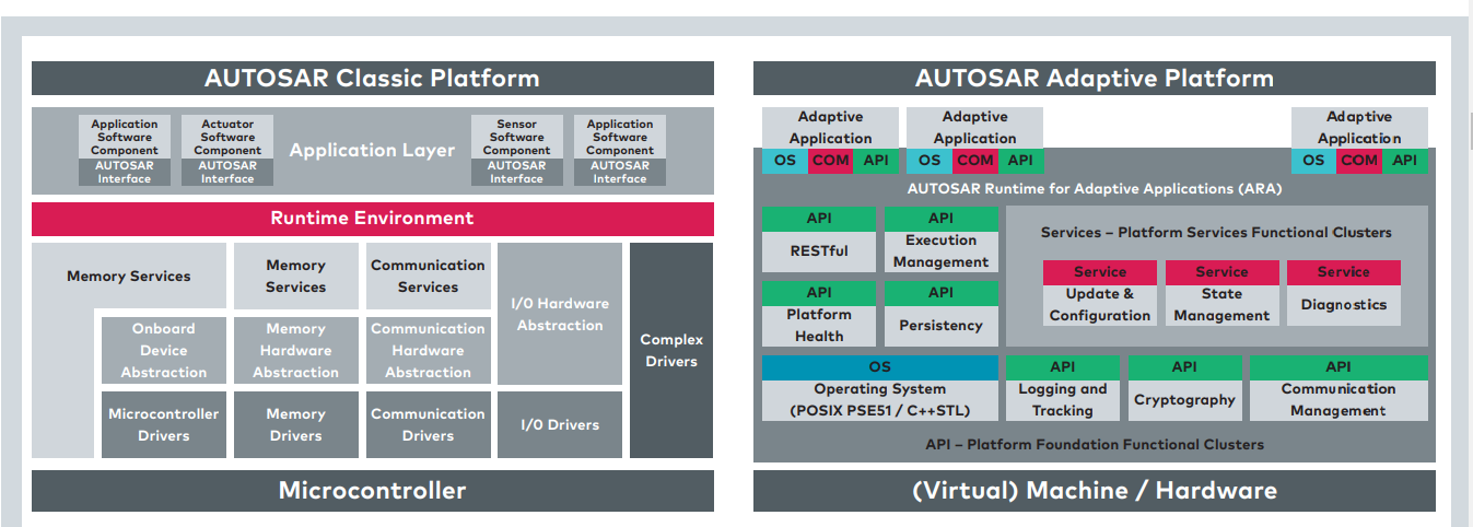 [Classic AUTOSAR와 Adaptive AUTOSAR의 아키텍쳐]